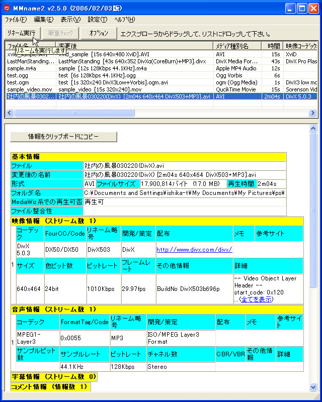ファイル名の頭に見出し+インデックス(【アルバム か】等)を付与したり、キーワードより置換したりできる便利なリネームツールです。 編集より、詳細な変換方法を自分で設定することができます。 ファイルをインデックス(あいうえお)順に並べたりする場合に試してみてください。 PR MMname2 http://page.freett.com/HarryTools/